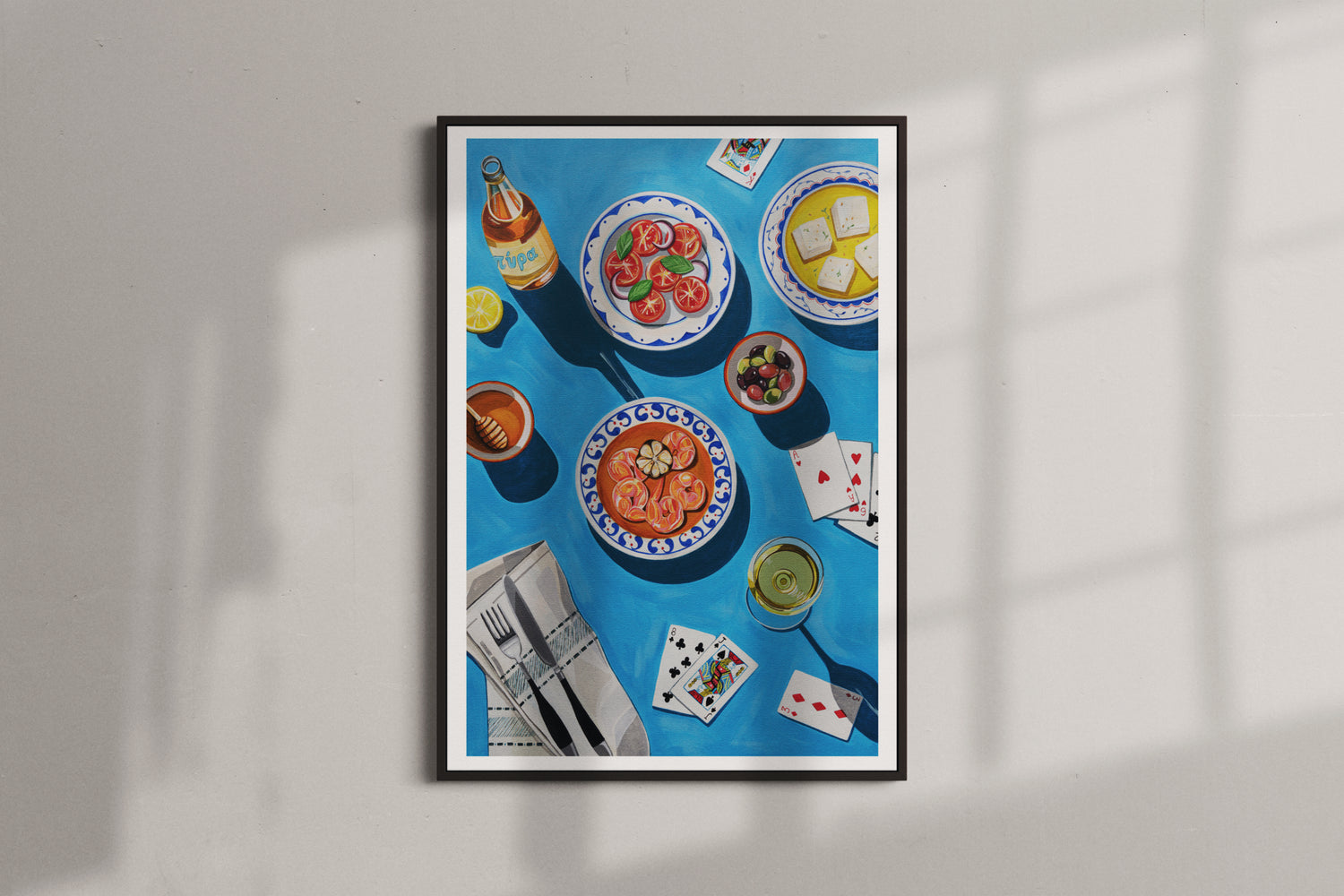 Inspired by our Greek date nights in Rhodes last year, this painting is a little love letter to slow moments under the sun, good food, and even better company.