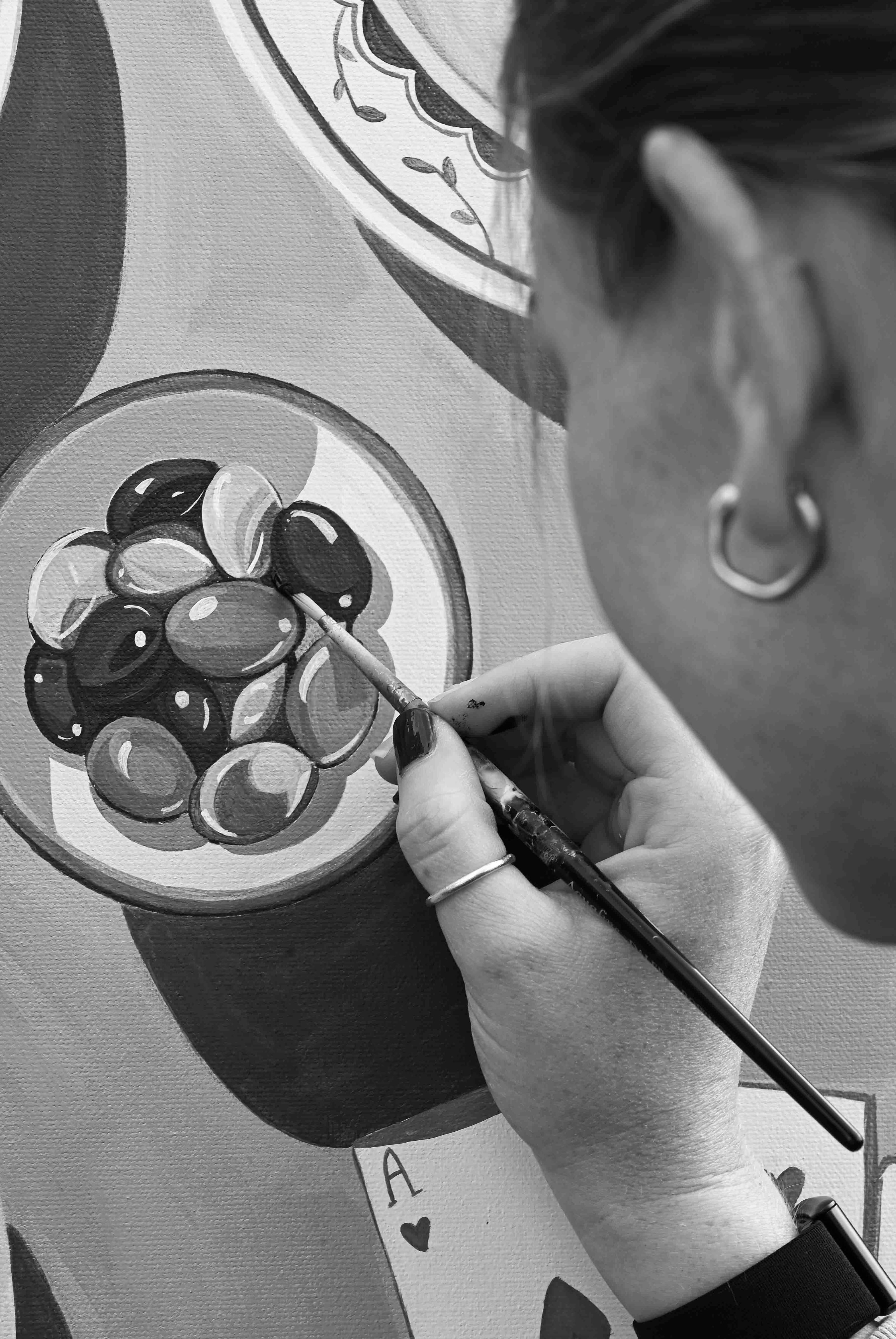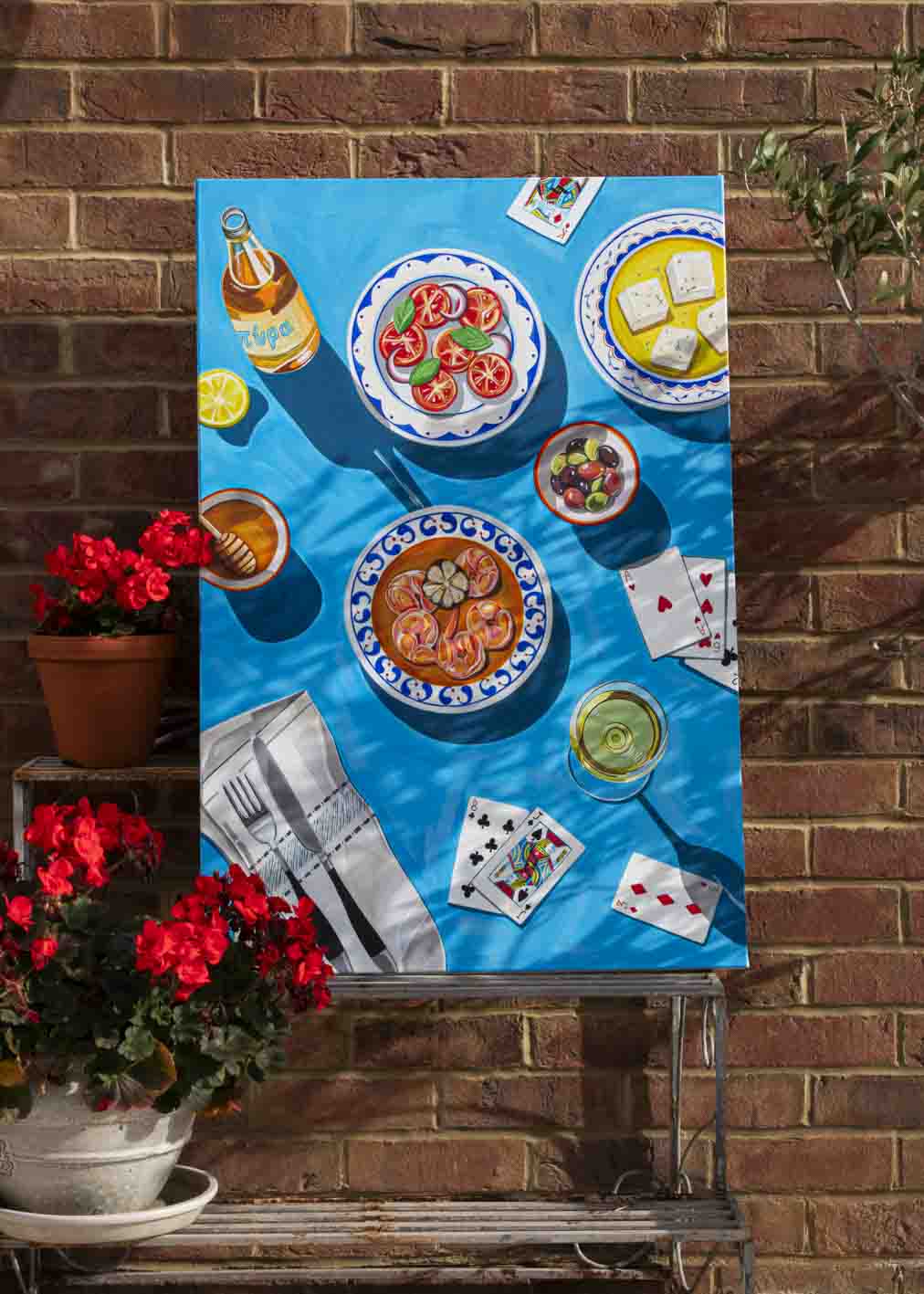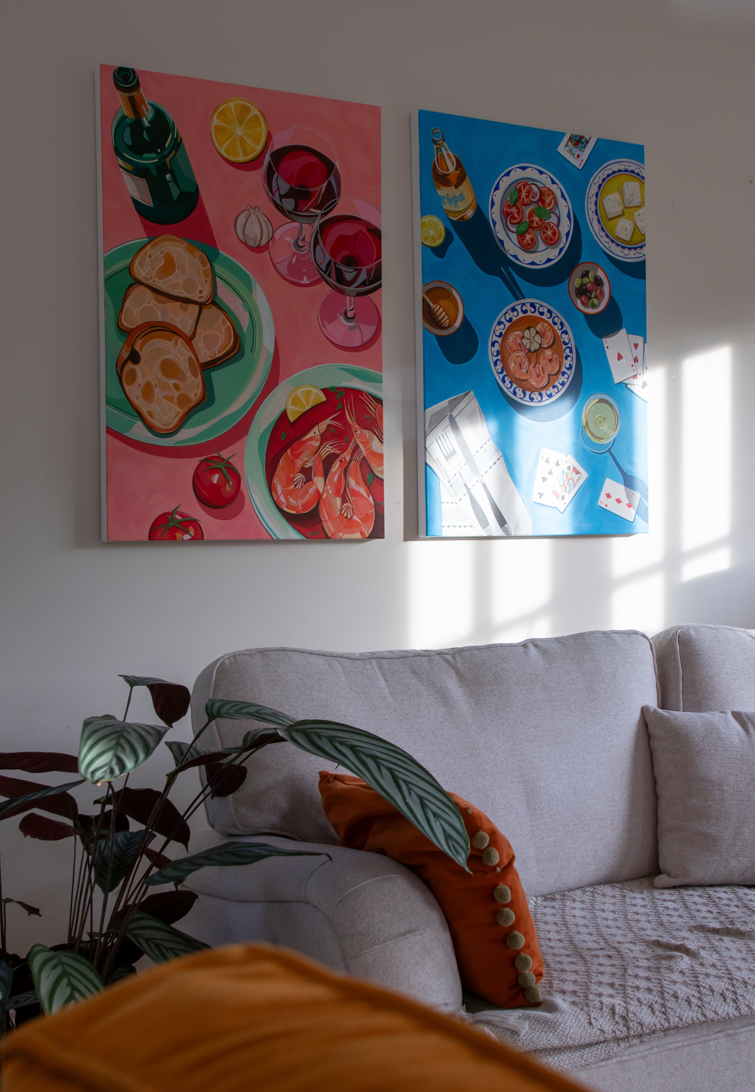 Inspired by our Greek date nights in Rhodes last year, this painting is a little love letter to slow moments under the sun, good food, and even better company.