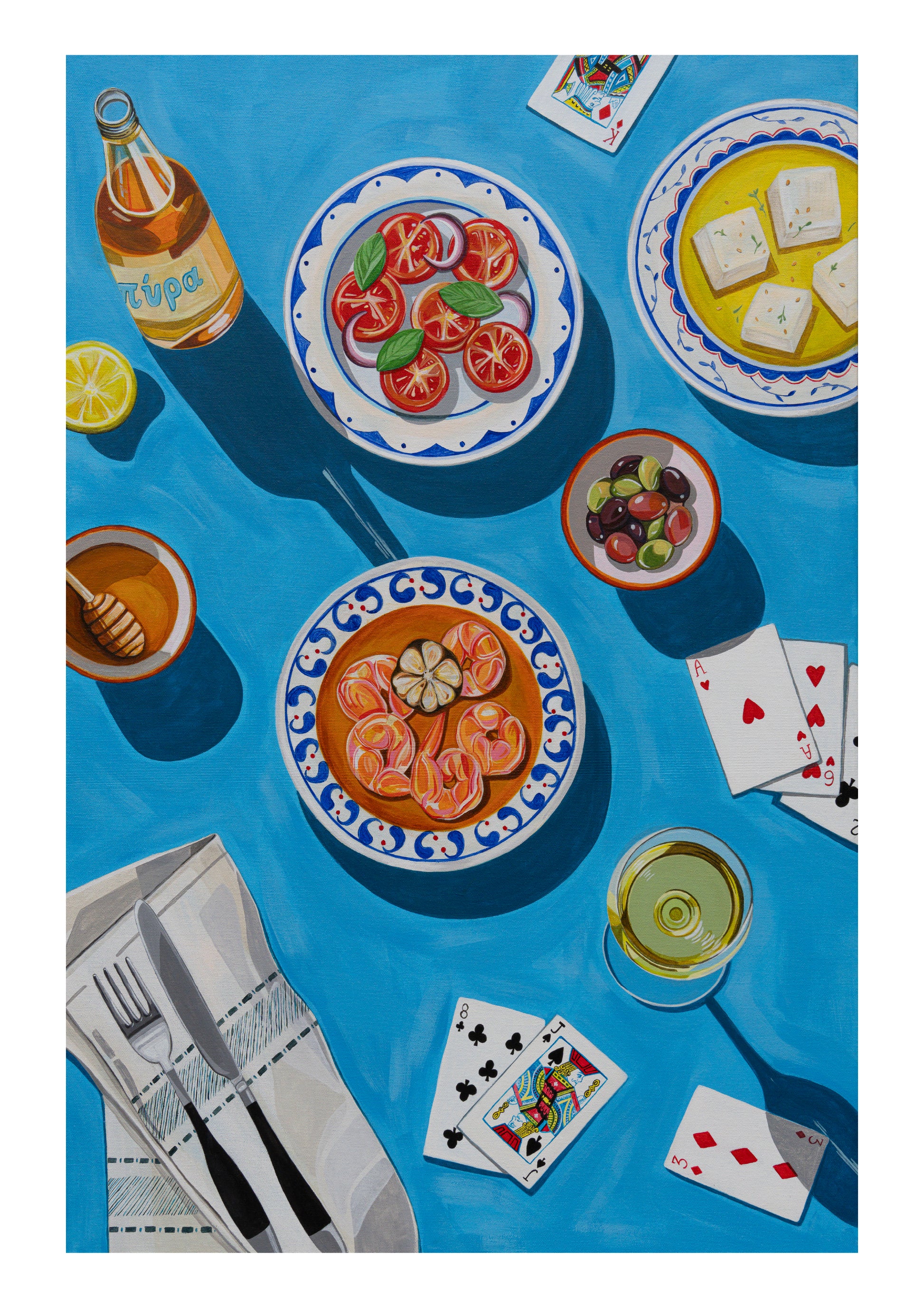 Inspired by our Greek date nights in Rhodes last year — warm evenings filled with plates of feta and tomatoes, chilled wine, competitive card games, and the distant sound of the sea. A little love letter to slow moments, good food, and even better company.