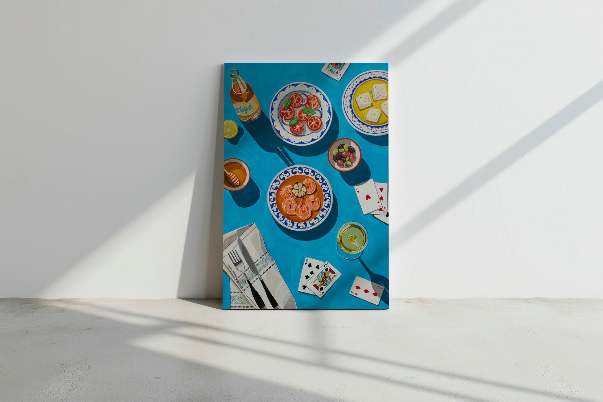 Inspired by our Greek date nights in Rhodes last year — warm evenings filled with plates of feta and tomatoes, chilled wine, competitive card games, and the distant sound of the sea. A little love letter to slow moments, good food, and even better company.